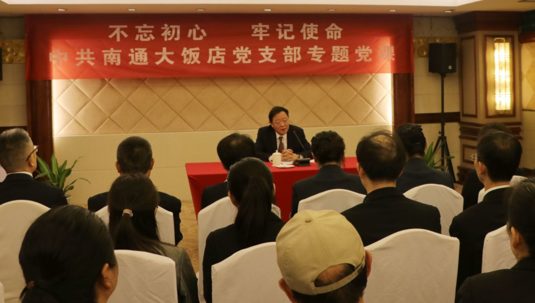 7月1日下午,南通大飯店黨支部在飯店黃河廳舉行專題黨課。飯店總經(jīng)理、黨支部書記裴浩兵以“不忘初心、牢記使命”為主題,為全體黨員、入黨積極分子上了生動(dòng)的一課。