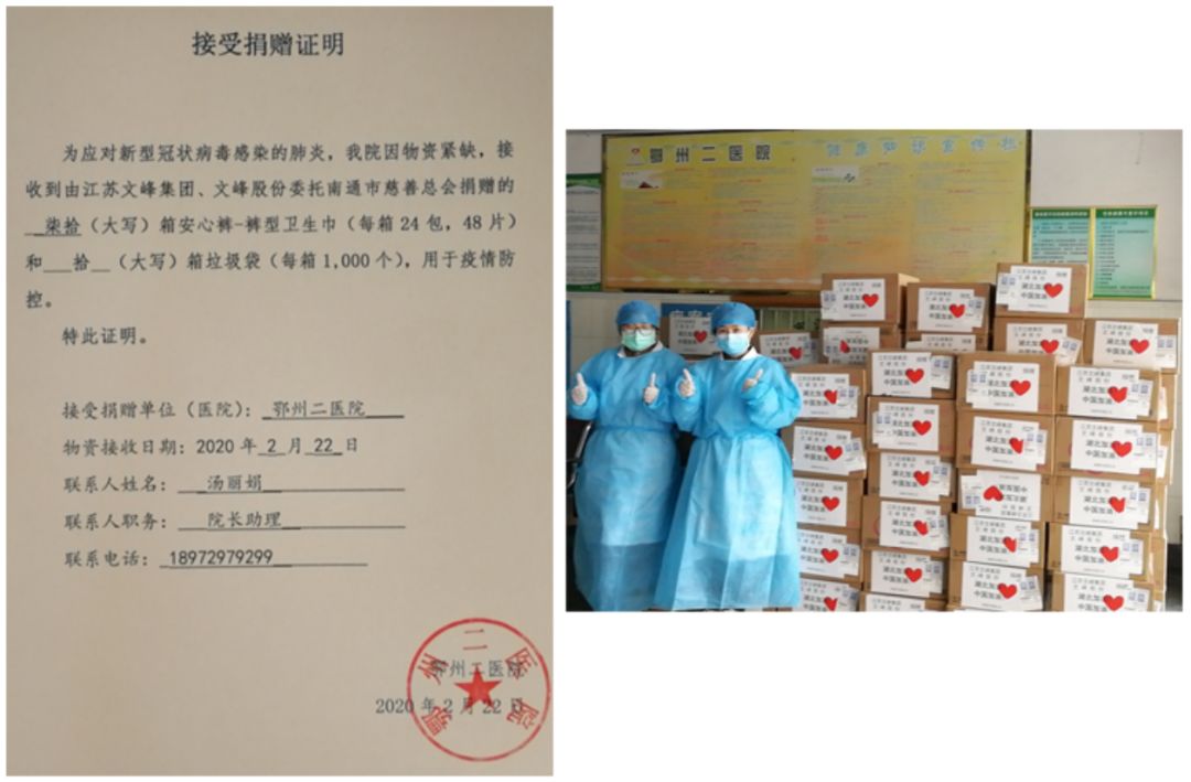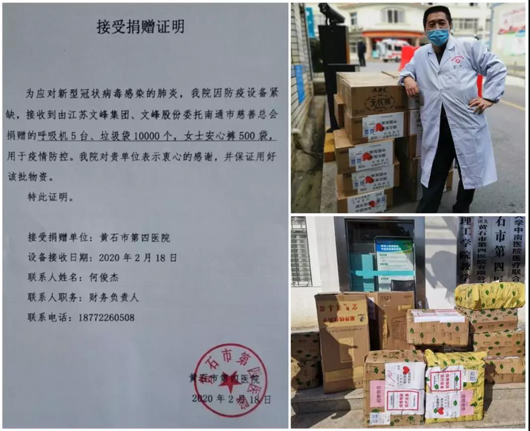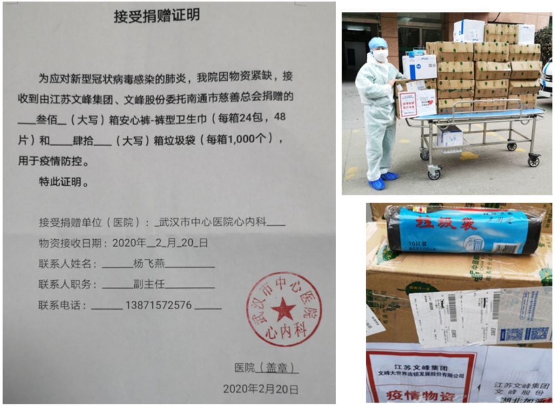 1、文峰集團、文峰股份各捐資1000萬元,設立疫情專項基金,其中1000萬元定向用于湖北疫區定點醫院醫療設備等物資采購,慰問奮戰在湖北疫區防疫一線的醫護人員,以及救助、援助湖北疫區因疫情致貧致困的困難群眾;向南通捐助500萬元的醫療設備及物資;向張家港慈善總會捐資500萬元,用于本地疫情防治和人員防護等;
