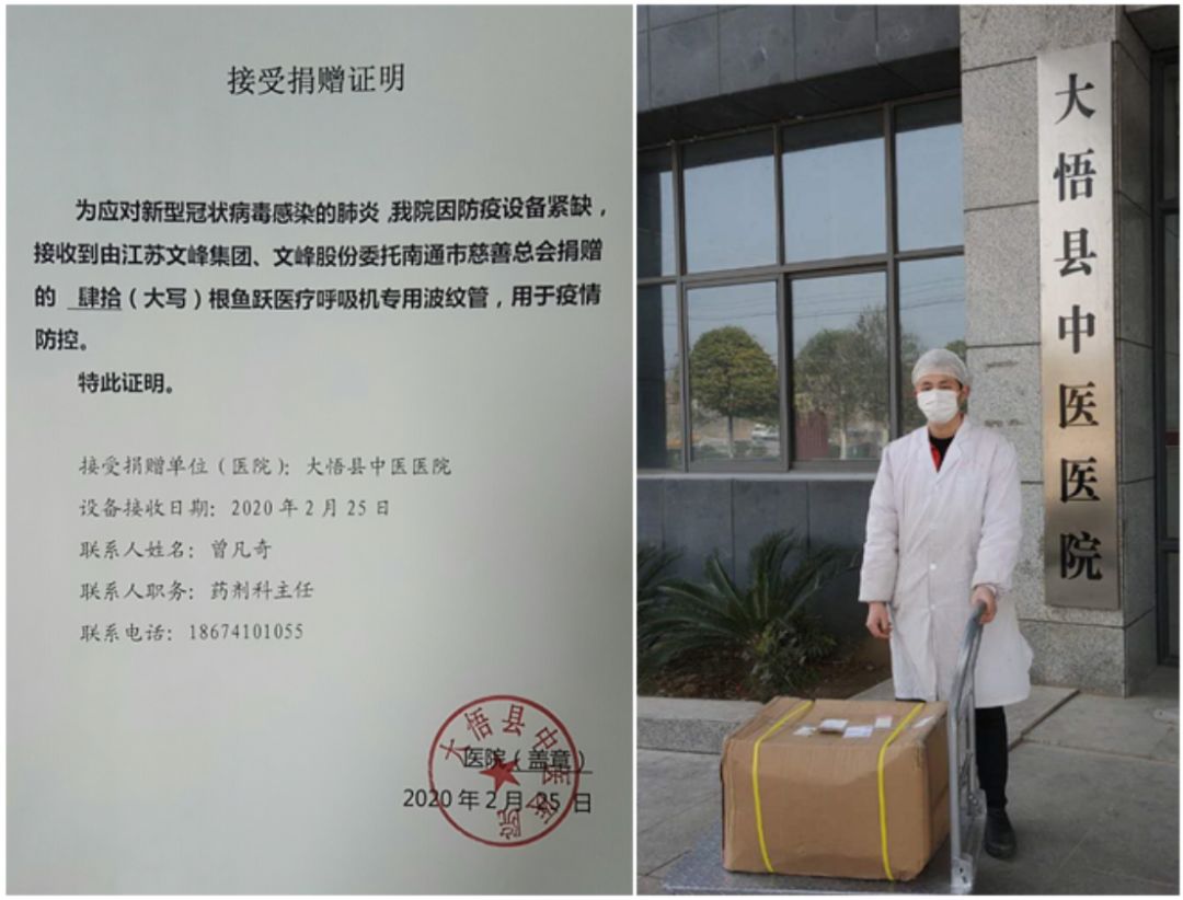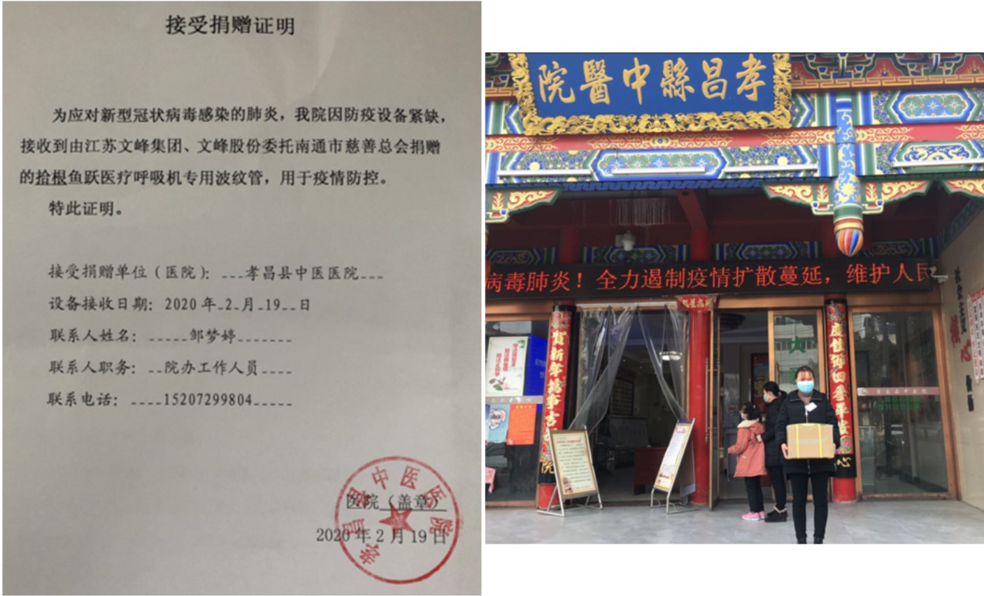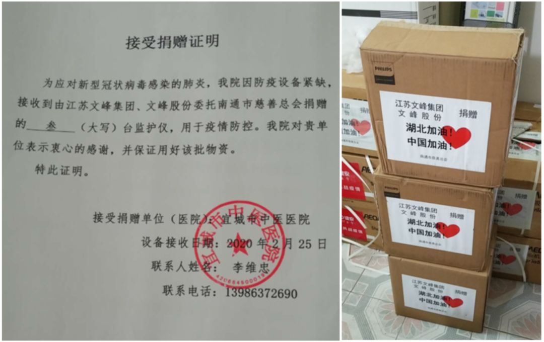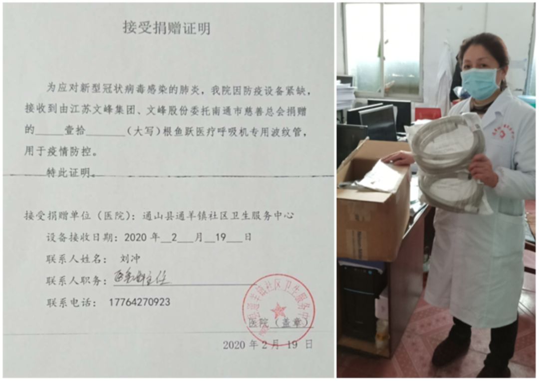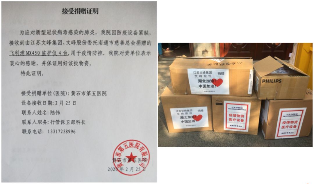 資金用途:江蘇文峰集團定向捐贈張家港廣和中西醫結合醫院,用于采購醫療設備、防疫物資