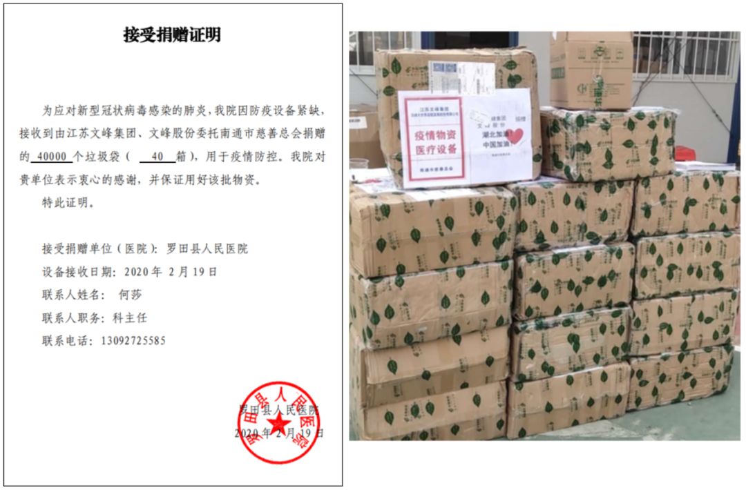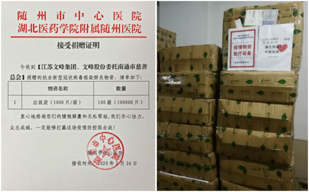 樂善好施,扶危助困,是中華民族的傳統美德。面對新冠肺炎疫情這場沒有硝煙的戰爭,為了向奮戰在一線的醫護人員提供全面支持,江蘇文峰集團、文峰股份全力以赴提供緊缺防控物資,周密組織、統一調配,將防控物資源源不斷地發往戰“疫”一線。所有這一切,就是為了同各界一起打贏疫情防控的攻堅戰。