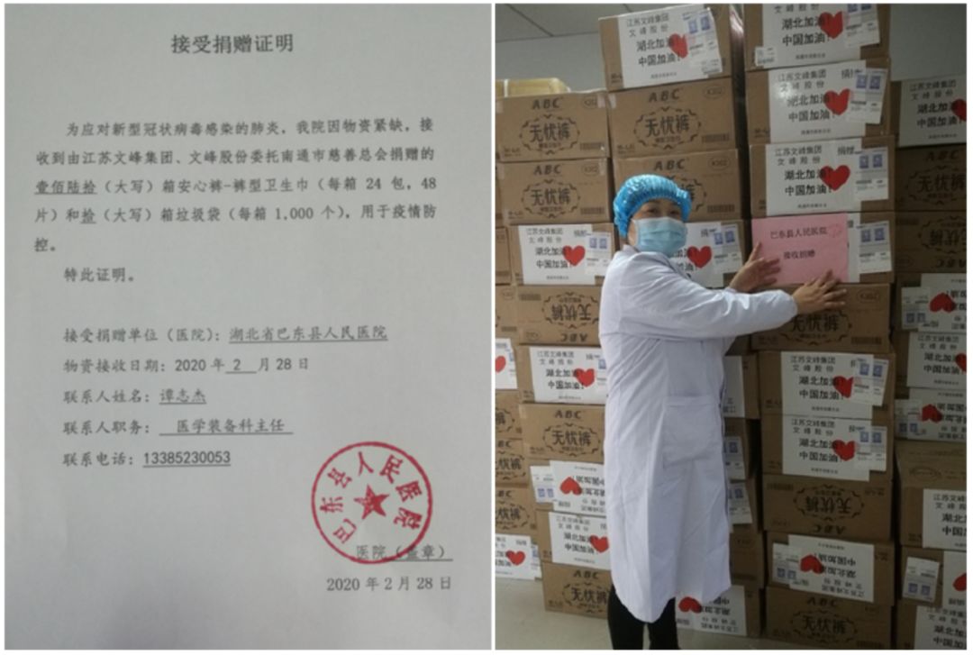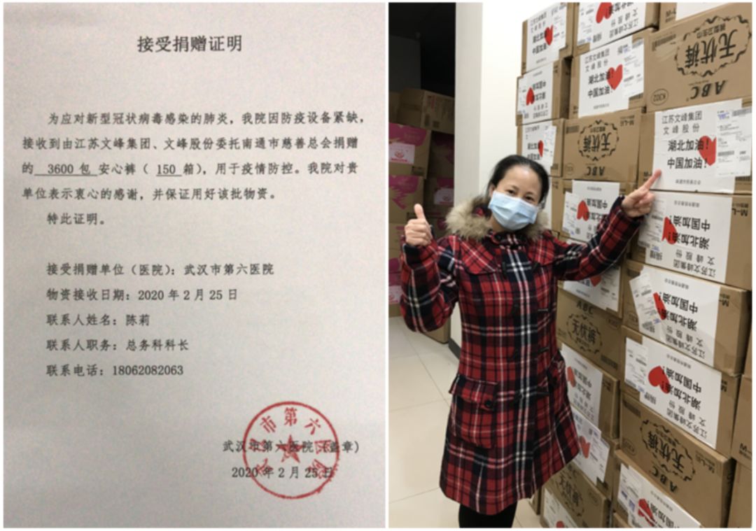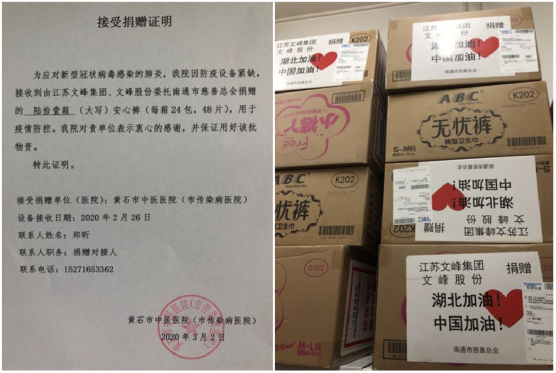 據了解,戰斗在一線的醫生中50%以上為女性,女護士更是超過90%。女性醫護人員的年齡層集中在中青年,當她們在特殊的生理期,依然要忍著生理不適堅守崗位,高強度搶救病人。由于防護服穿脫一次就作廢,一線醫護人員為了節省防護服,經常連續8-9個小時不換防護服。考慮到她們的特殊需求,江蘇文峰集團緊急行動,捐贈了2500箱安心褲馳援武漢,為奮戰在一線的女性醫護人員奉獻一份力量。