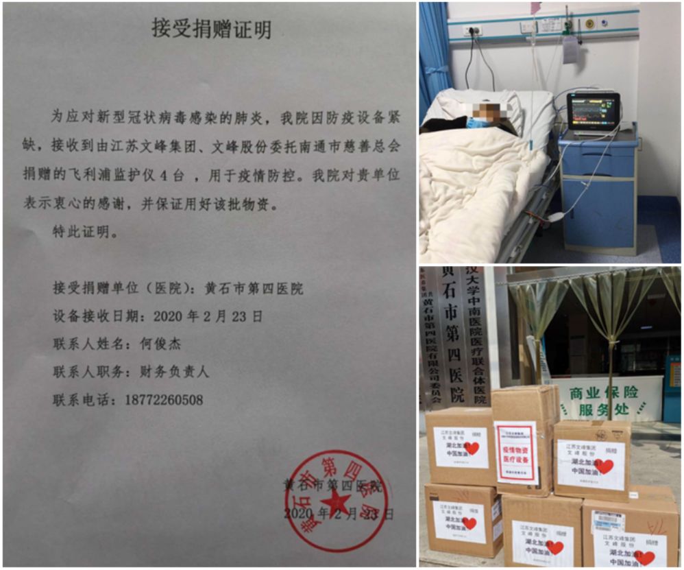 資金用途:江蘇文峰集團定向捐贈張家港市第一人民醫院,用于采購醫療設備、防疫物資