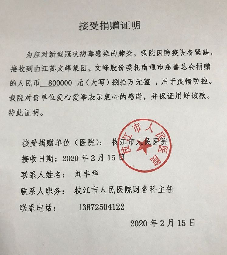 目前,文峰的捐款共計2165萬元。捐款只是第一步,用好善款是當務之急。文峰集團、文峰股份組織專人對接廠家、醫院,讓急需的物資能夠及時到達最需要的人手里。