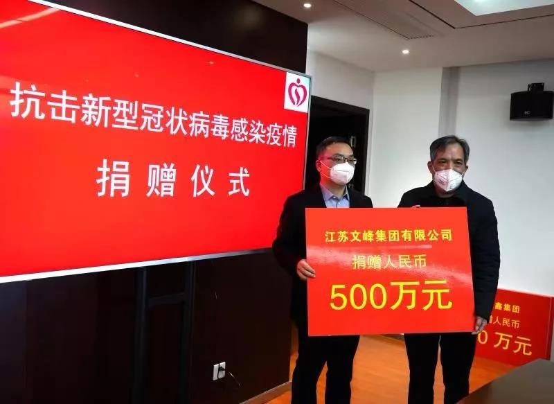 向張家港慈善總會捐資500萬元,用于本地疫情防治和人員防護等。