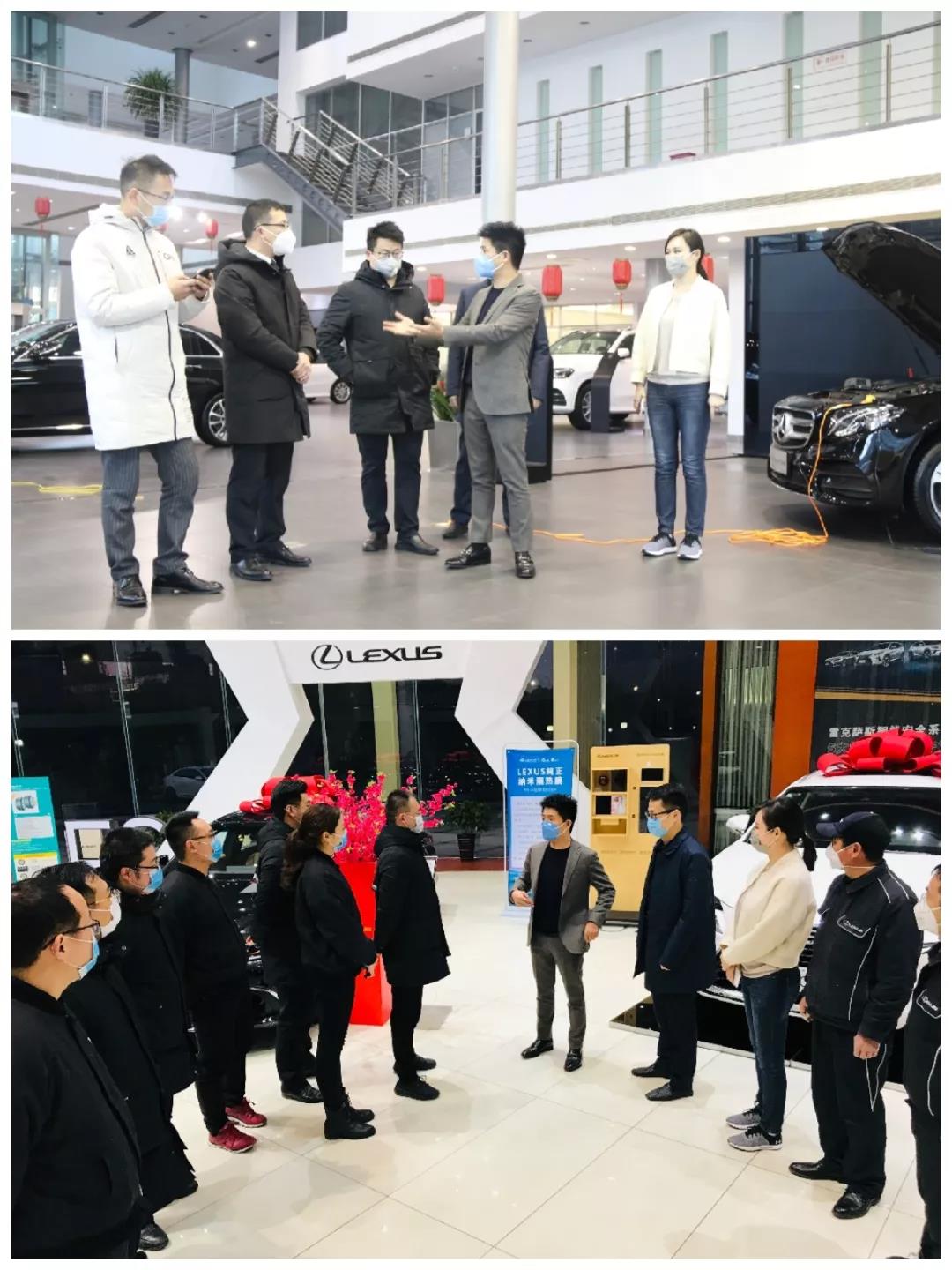 1月31日下午,江蘇文峰汽車集團總裁陳曉、副總經理顧瑩禎、財務總監黃明軒一行檢查了旗下奔馳4S店、雷克薩斯4S店的疫情防護工作。
