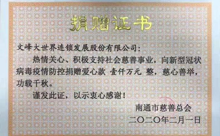 文峰集團表示,視疫情發展,公司不排除推出更多措施,和社會各界一起戰勝疫情,共渡難關。