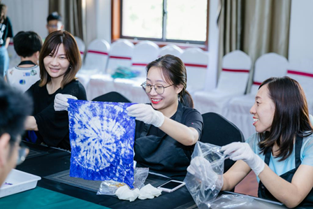 藍印花布DIY的活動環(huán)節(jié),是車主媽媽們大顯身手的時候,她們天馬行空的創(chuàng)意和巧奪天工的技藝,無不展示著她們的心靈手巧和秀外慧中,一件件精美的作品在她們的努力下制作完成,其中一位車主靈感一現(xiàn),在自己的衣服上印出了奔馳的星徽logo,引發(fā)了大家的贊嘆。車主媽媽們興奮、激動地和家人一起分享了自己的作品,南通文峰奔馳的工作人員也為她們的表現(xiàn)鼓掌致意。此次的藍印花布DIY活動環(huán)節(jié),喚醒了車主媽媽們沉睡已久的天賦,也為她們帶來了無以言表的愉悅感受。
